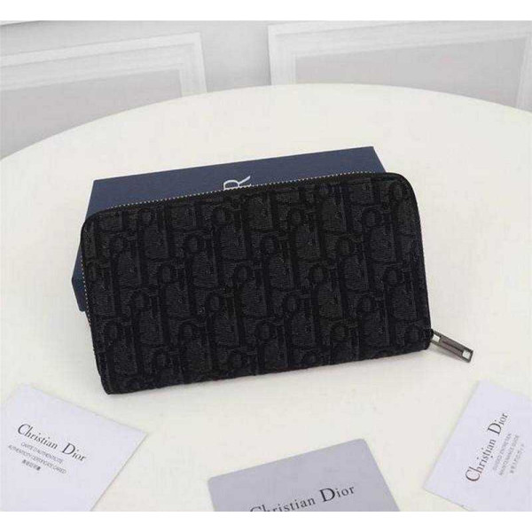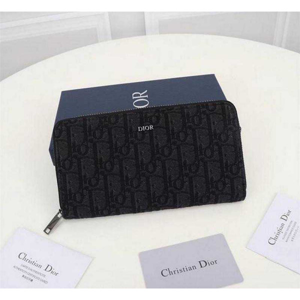 뒤로 디올 CD 오블리크 로고 패턴 지퍼 장지갑 | 19.8 x 11cm > WALLET
