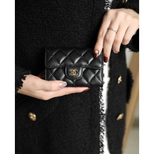 • 샤넬클래식 램스킨 플랩 카드지갑 금장 | 7.5 x 11.3 x 2.1cm