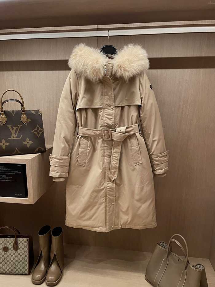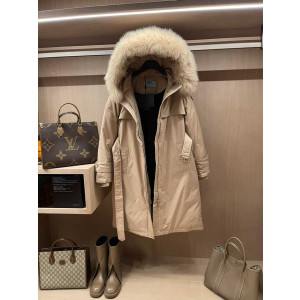 프라다 삼각로고 롱패딩 베이지