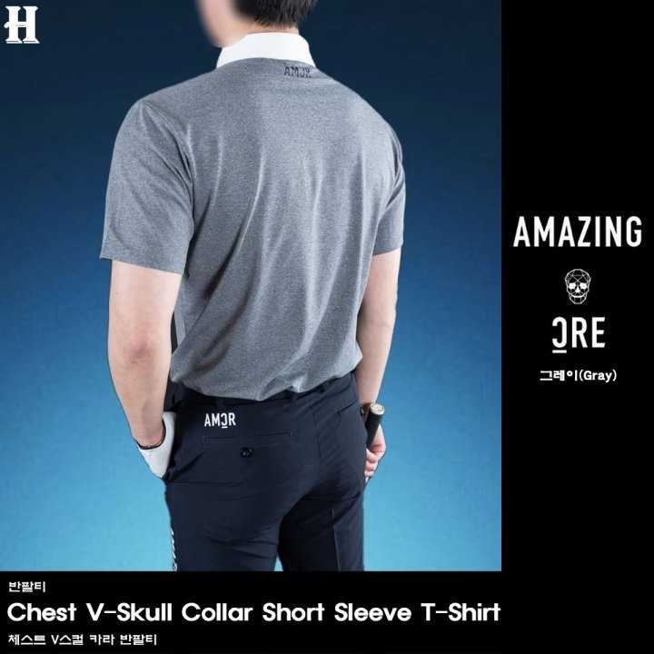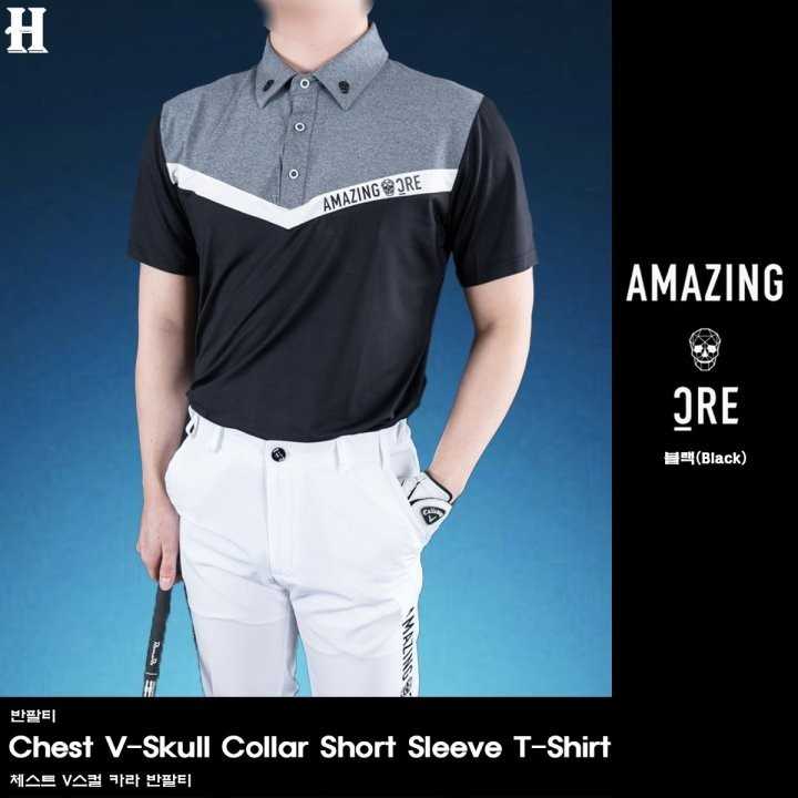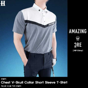 어메이징크리 남성 크리 체스트 V스컬 카라 반팔티(2color) > GOLFWEAR