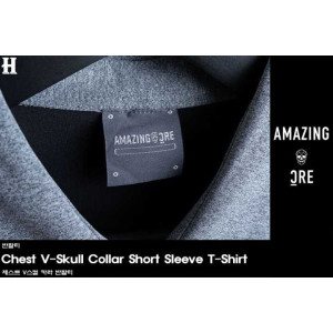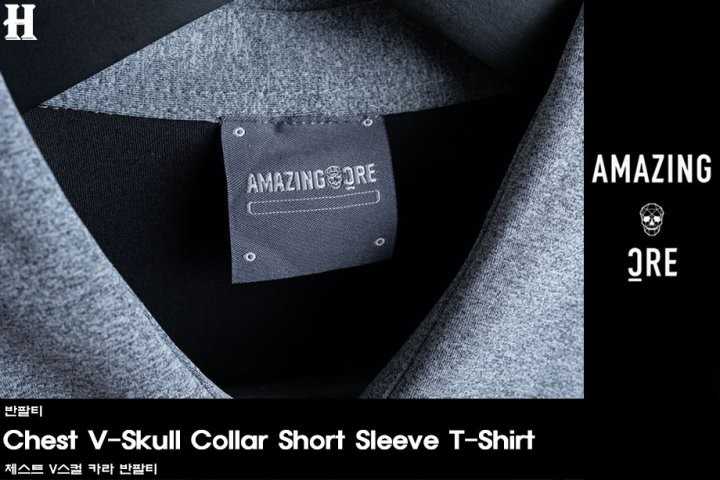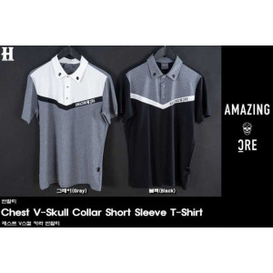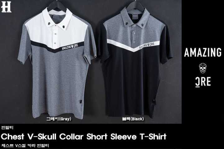 어메이징크리 남성 크리 체스트 V스컬 카라 반팔티(2color)