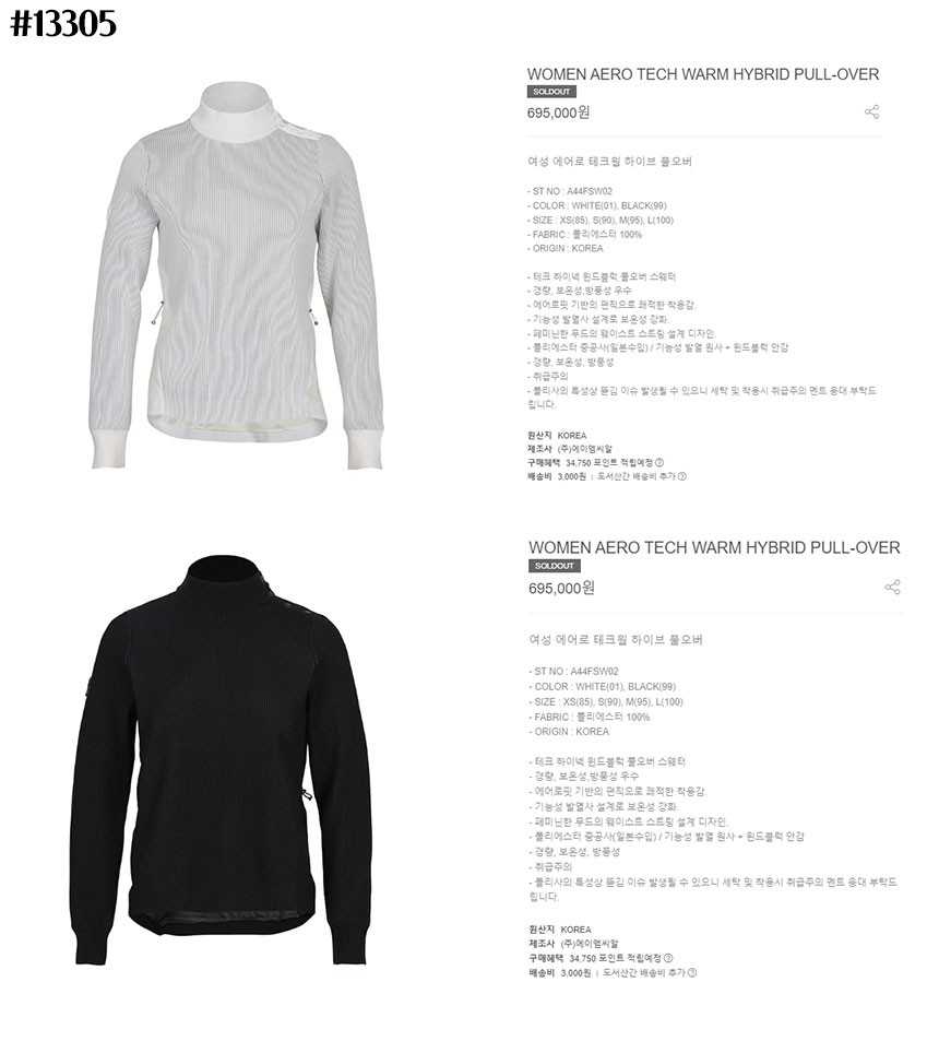 어메이징크리 여성 에어로테크 웜 하이브 니트 풀오버(2color)