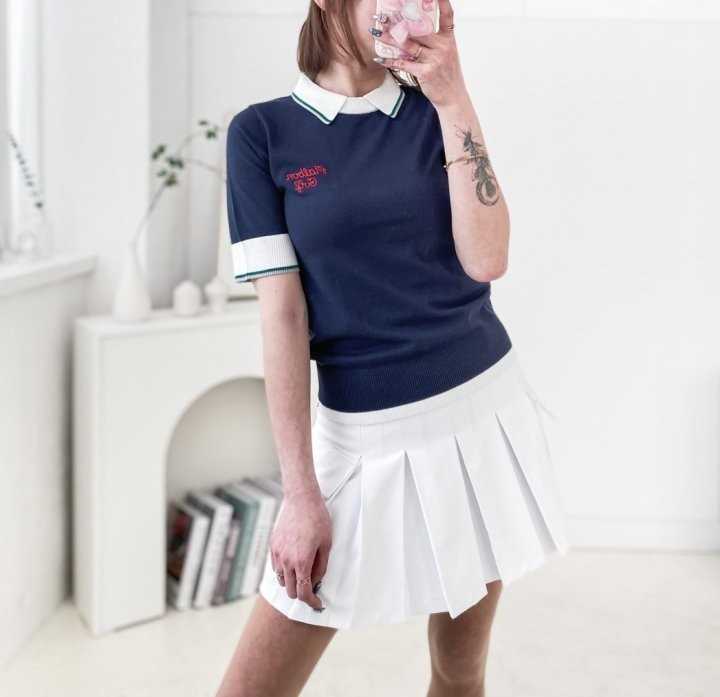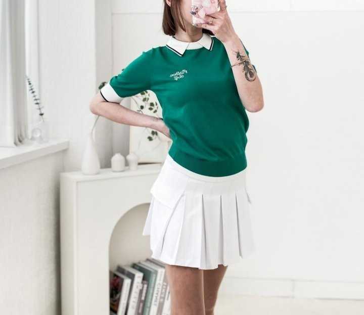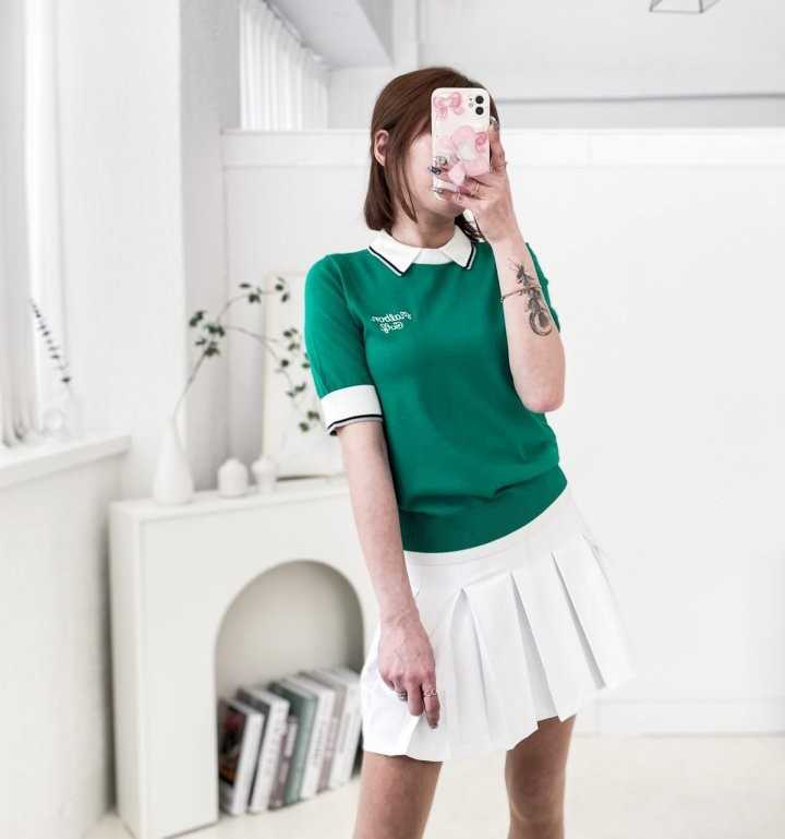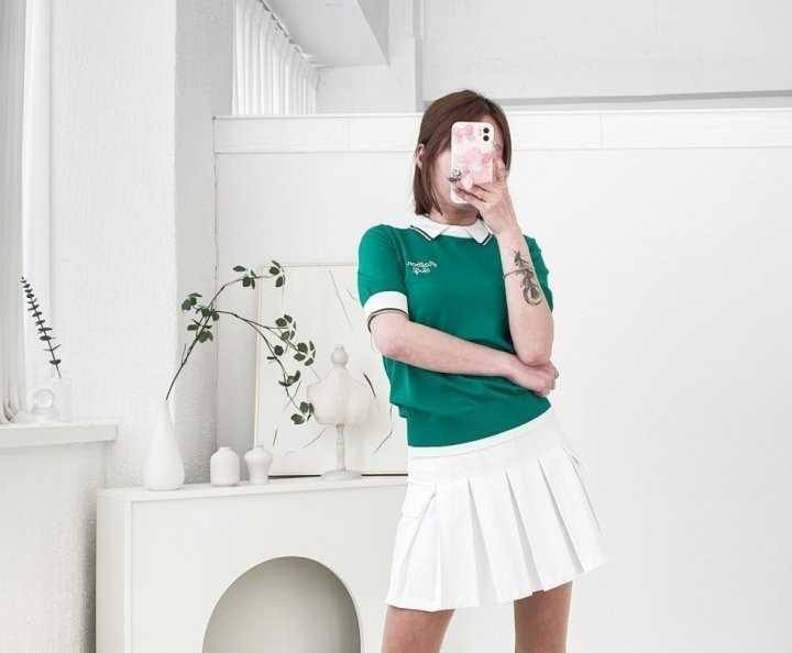 지포어 라인 포인트 PK 니트 반팔 카라티(2color)