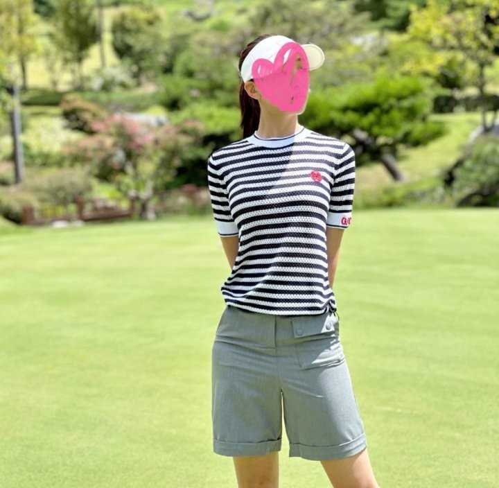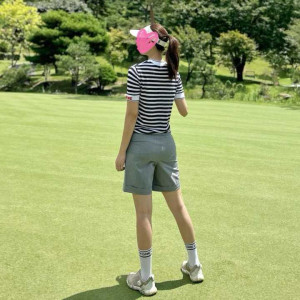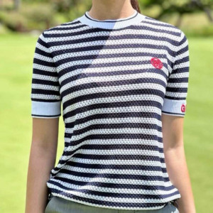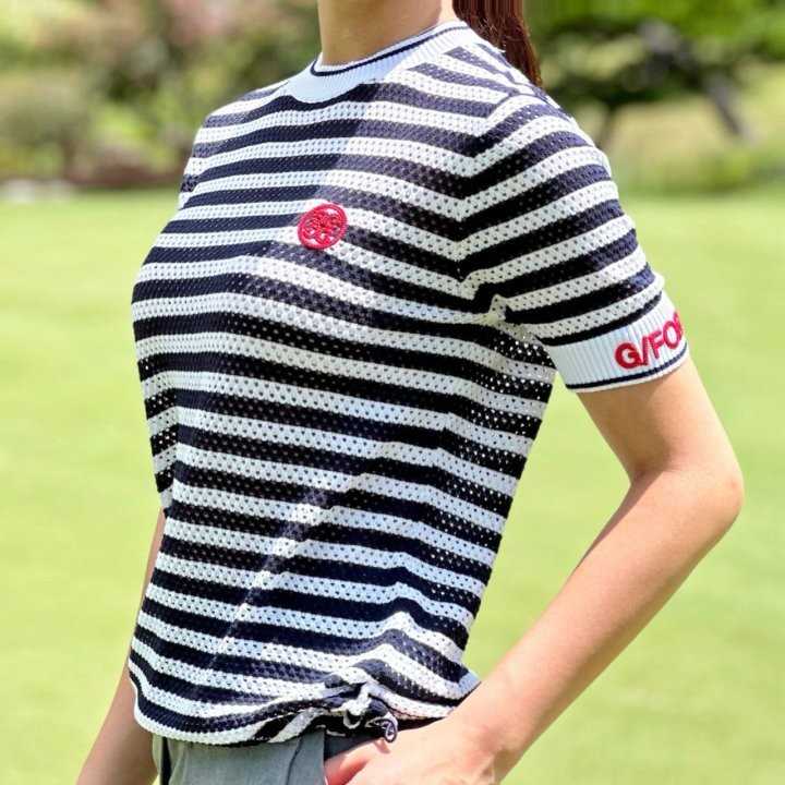 지포어 여성 메쉬 스트립 라운드 티셔츠(2color) > GOLFWEAR