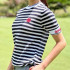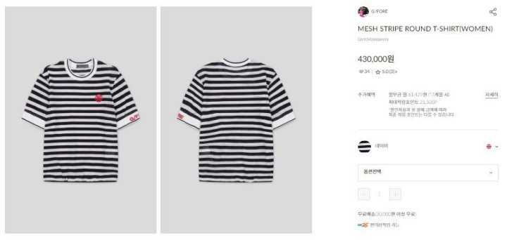 지포어 여성 메쉬 스트립 라운드 티셔츠(2color)
