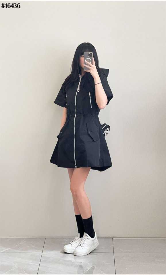 지포어 여성 하프 슬리브 후드 풀집업 드레스