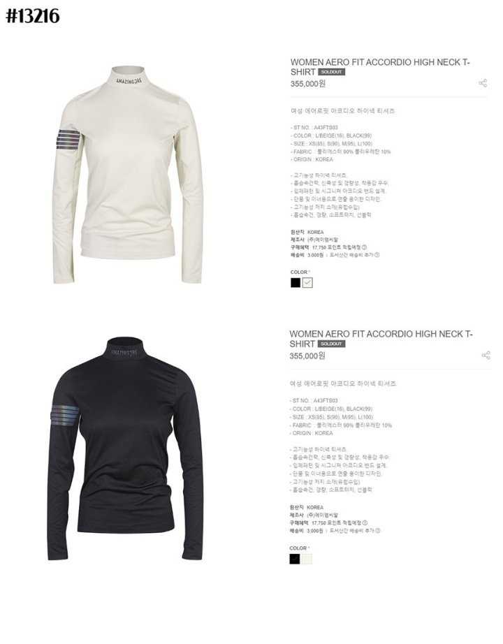 어메이징크리 여성 약기모 에어로핏 아코디오 하이넥 티셔츠(2color) > GOLFWEAR