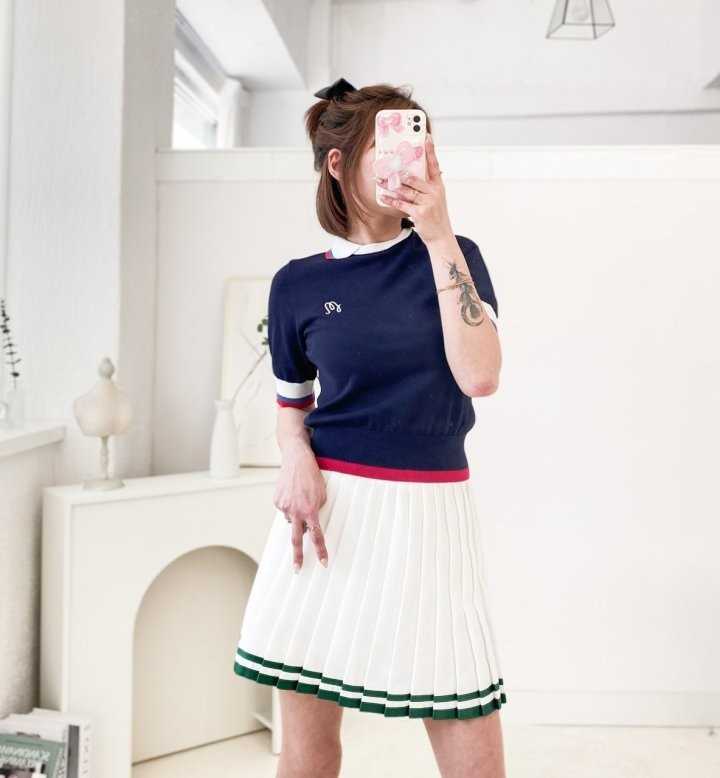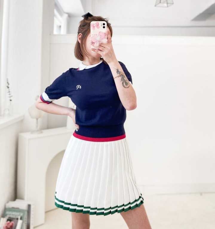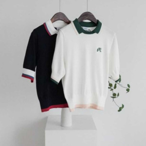 말본 여성 오픈 배색 카라 반팔 니트(2color) > GOLFWEAR