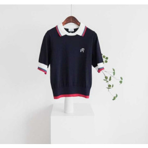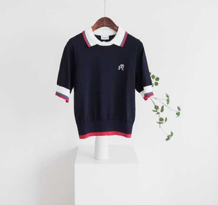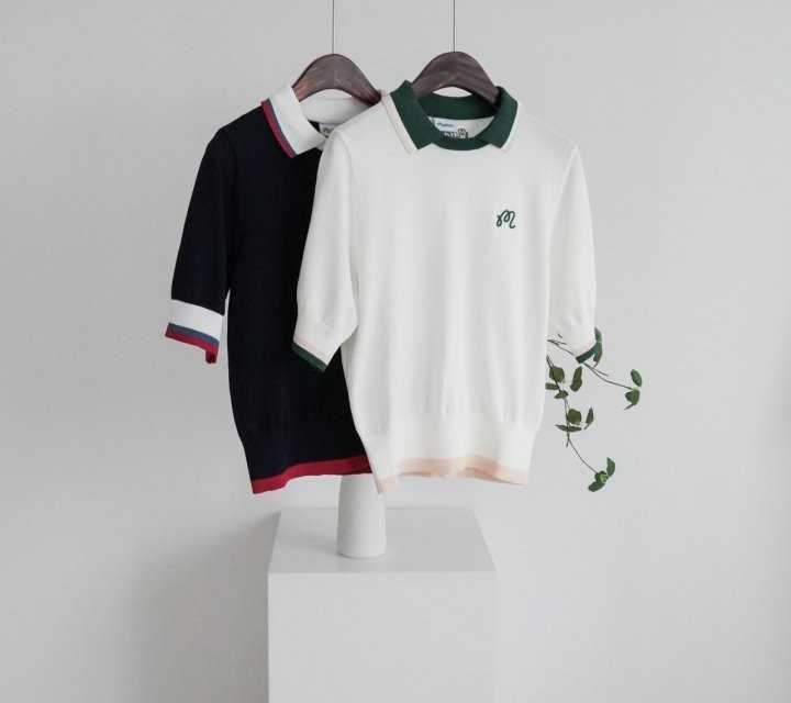 말본 여성 오픈 배색 카라 반팔 니트(2color)