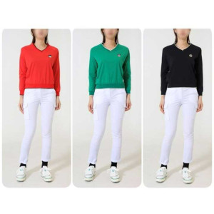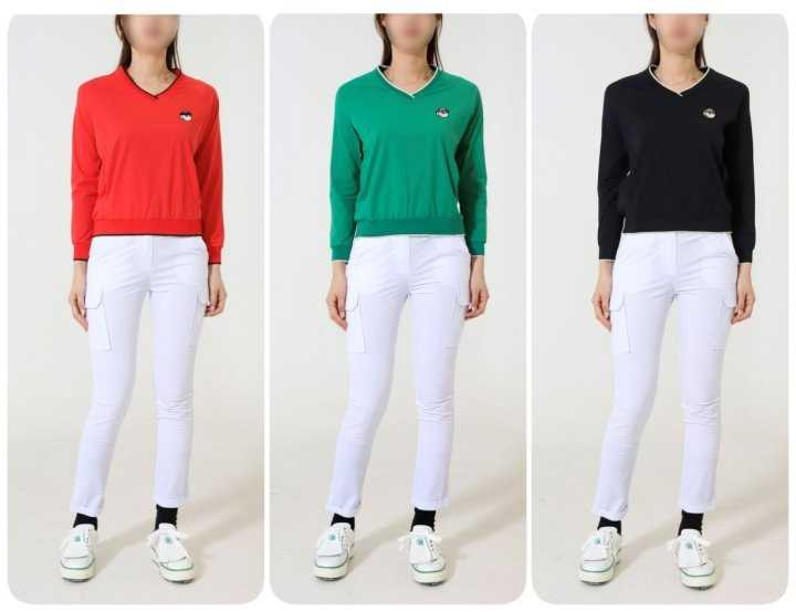 말본 여성 수입 버킷 자수 브이넥 기능성 셔츠(3color)