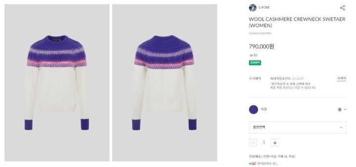 지포어 여성 수입 울 캐시미어 크루넥 스웨터(2color)
